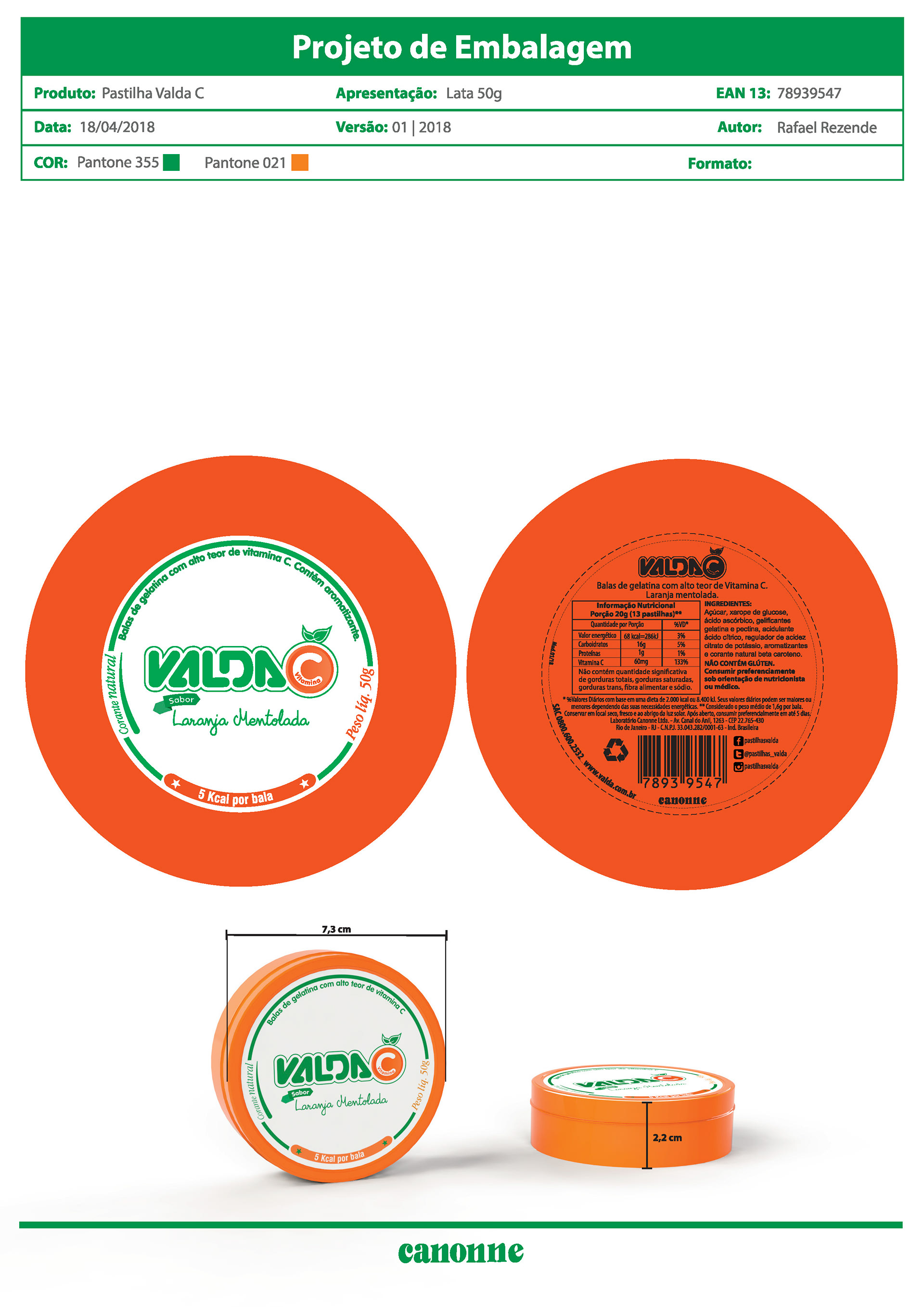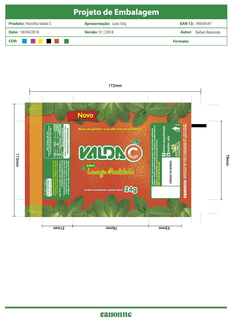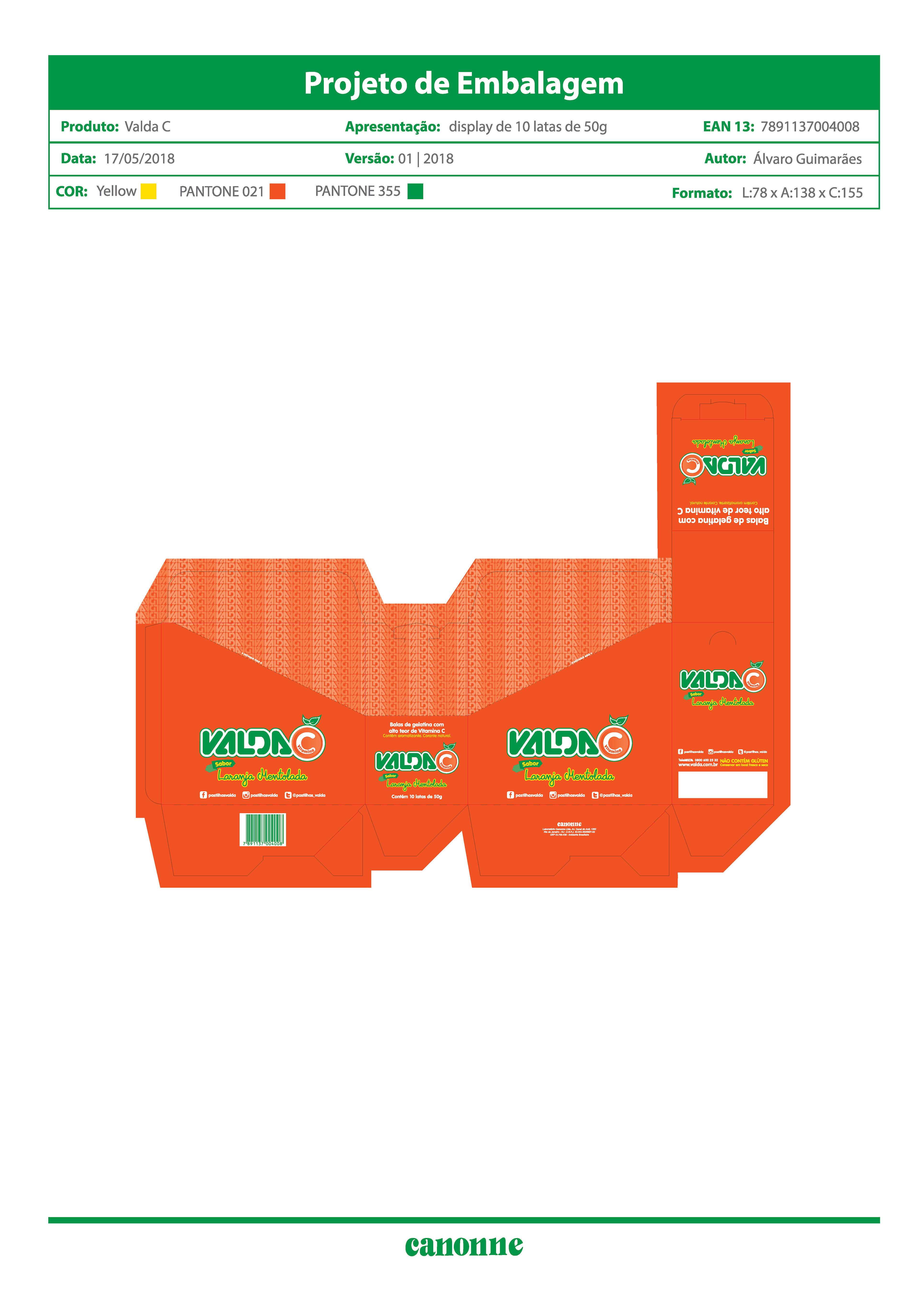 Criação e desenvolvimento de logo, embalagem e materiais de divulgação para PDV do produto Valda C para o Laboratório Canonne.